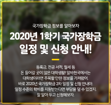 대학생이 되면 몇백만원이 훌쩍넘는 학비, 식비, 시험준비 등 돈 들어갈 곳이 많아지는데요, 모든 비용을 충당하려면 본인 뿐만아니라 부모님에게도 부담이 되기 마련입니다. 이럴 때 일정 수준의 학비를 국가로 부터 지원을 받을 수 있다면 어느 정도 부담을 덜 수 있습니다. 조금이나마 부담을 덜고 도움이 되길 바라며 2020년 한국장학재단 국가장학금 신청에 대해 알아보도록 하겠습니다.
