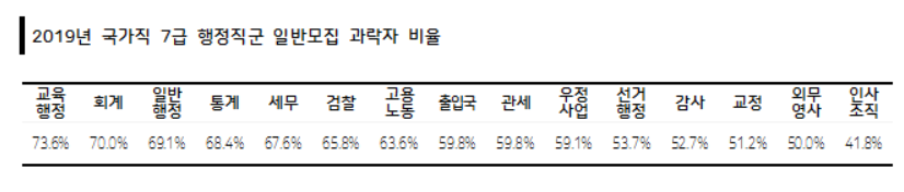 교육행정직, 회계직, 일반행정직, 통계직, 세무직, 검찰직, 고용노동직 등은 60%가 넘는 과락률을 보였습니다!