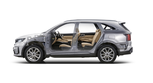 신형 쏘렌토는 신규 플랫폼의 컴팩트한 엔진룸 구조와 짧은 오버행와 긴 휠베이스를 바탕으로 하는 레이아웃 설계 바탕으로 삼고 있으며, 이를 통해서 동급 중형 SUV는 물론 상위 차급인 대형 SUV와 비교해도 경쟁력 있는 실내공간을 완성했다는 설명입니다.