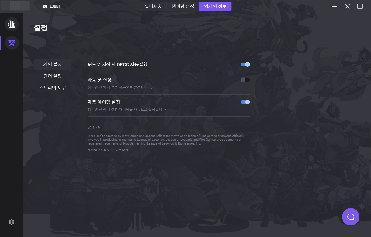 OP.GG 데스크탑 자동 룬 설정