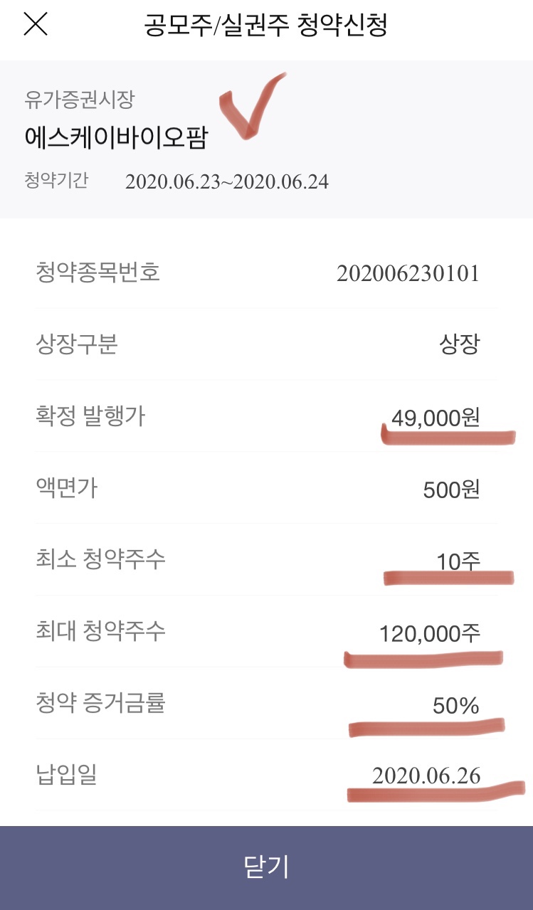 청약 증거금률은 50% 납입일은 6월 26일입니다. 환불일도 같고요. 상장예정일은 2020년 7월 2일입니다.