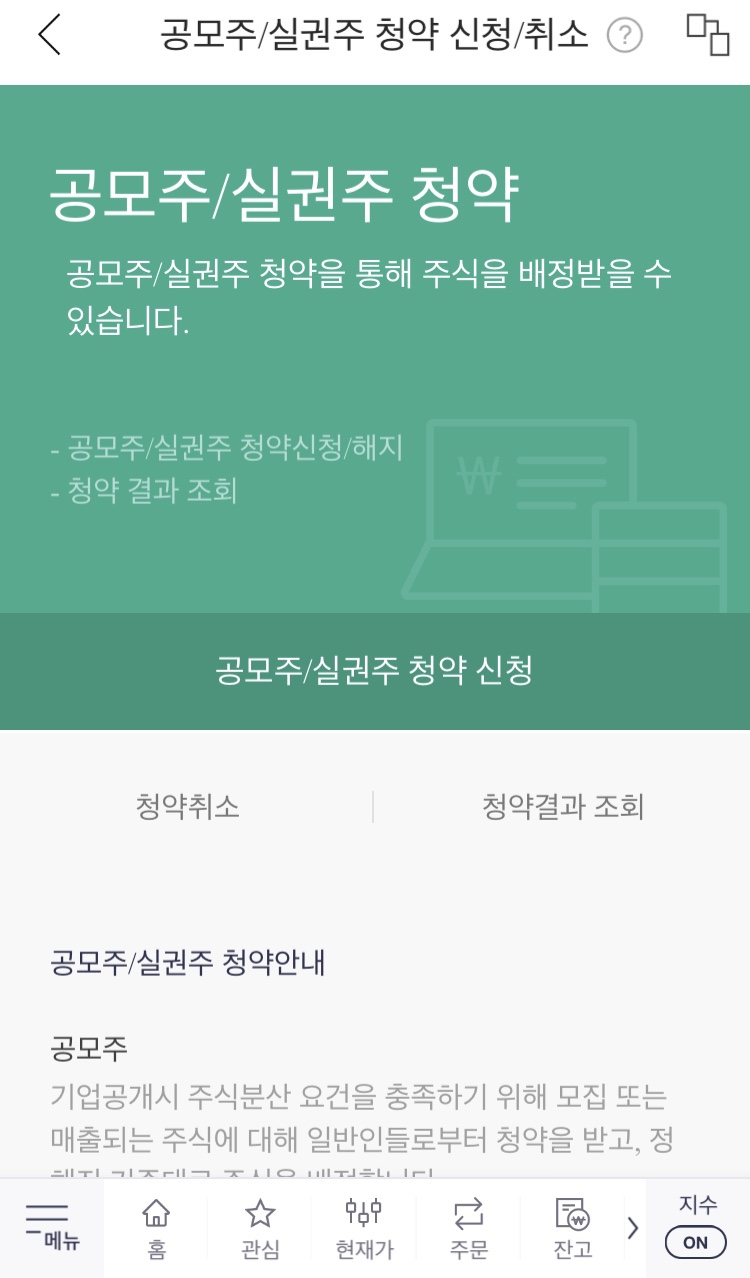 내용 파악이 되었다면 다시 공모주/실권주 청약 신청탭을 확인해봅니다.