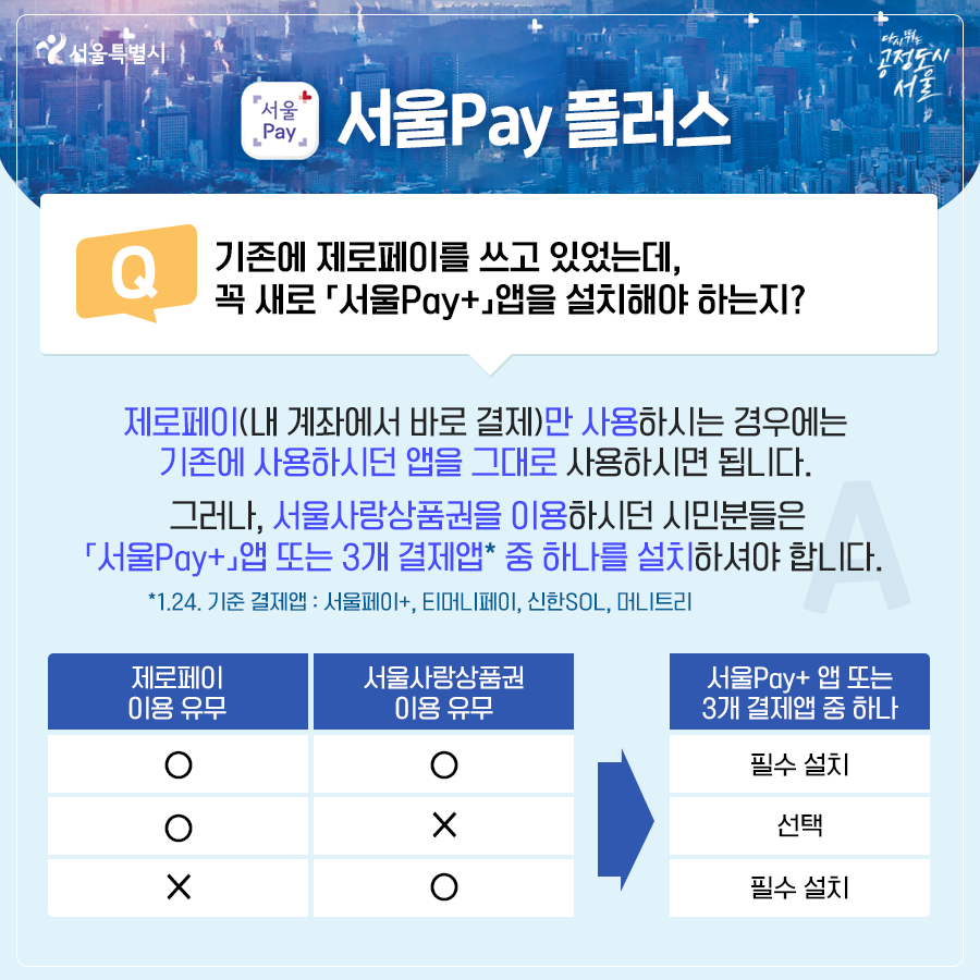 꼭 새로 「서울Pay+」앱을 설치해야 하는지?