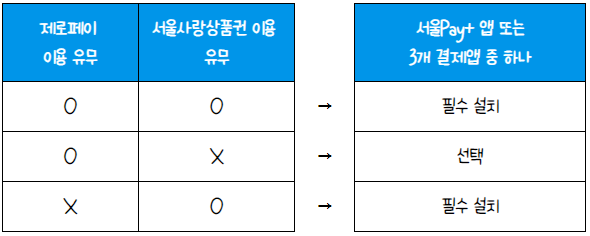 따라서 일정 기간 이후에는 「서울Pay+」앱 또는 3개앱 중 1개*를 필수로 설치하고