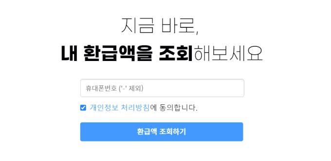 최근 5년치까지,2분 만에 환급액 조회! 복잡한 과정 없이2분이면 조회 완료! 지금, 환급액을 찾아보세요! 카카오로 간편하게 조회! 믿을 수 있는 서비스! KDB산업은행 외 14개 기관에서390억 투자